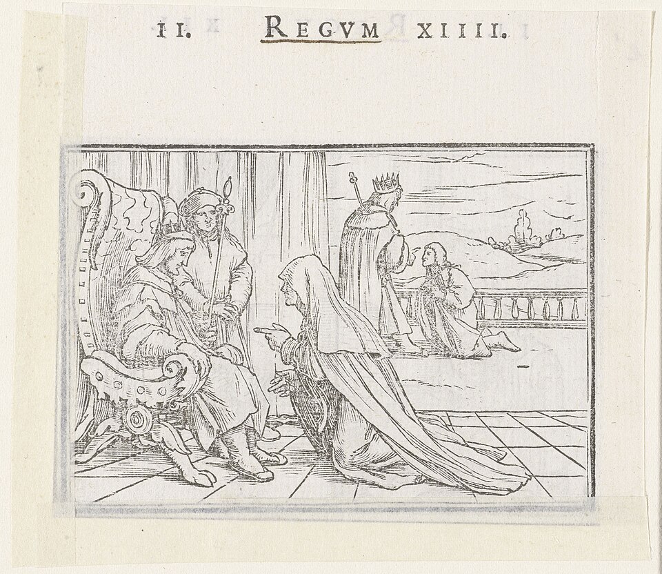 ドイツのスイス人画家 Hans Holbein der Jüngere (1497–1543)による「Wijze vrouw uit Tekoa in gesprek met David(ダビデと話すテコアの賢い女)」(Wikimedia Commonsより)