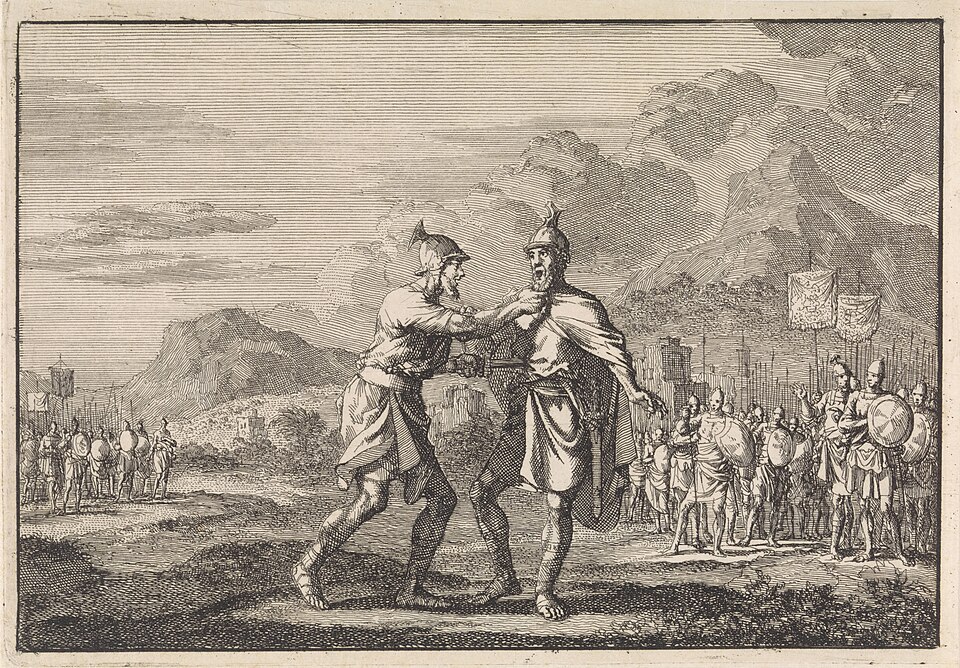 オランダの画家 Jan Luyken (1649–1712)による「Joab doodt Amasa(ヨアブはアマサを殺す)」(Wikimedia Commonsより)
